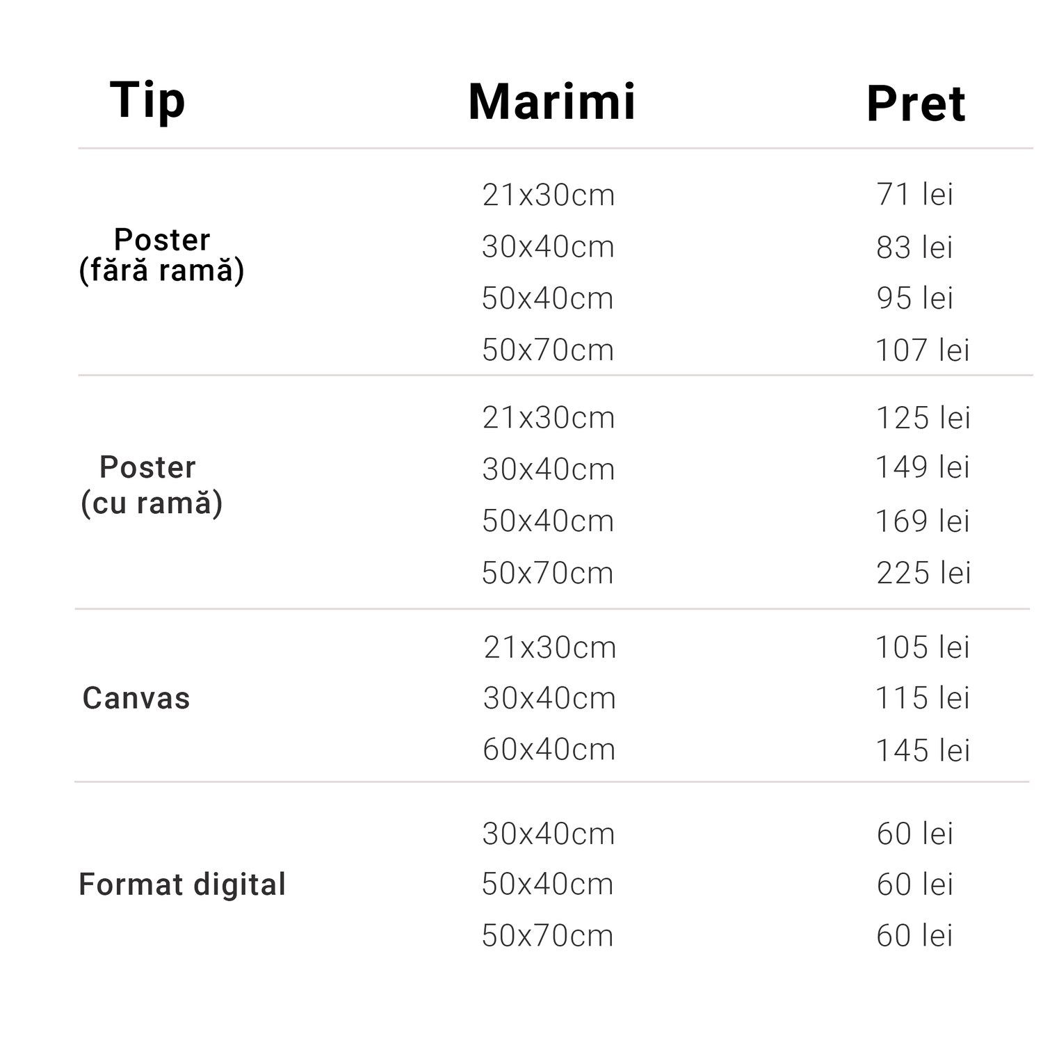 Dimensiuni disponibile