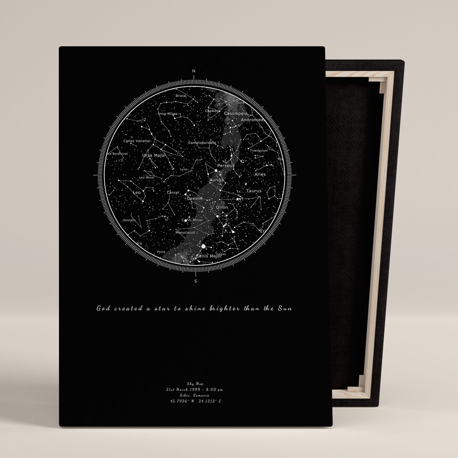 Cel mai bine vandut produs al nostru este harta stelara canvas in format 30x40 cm.